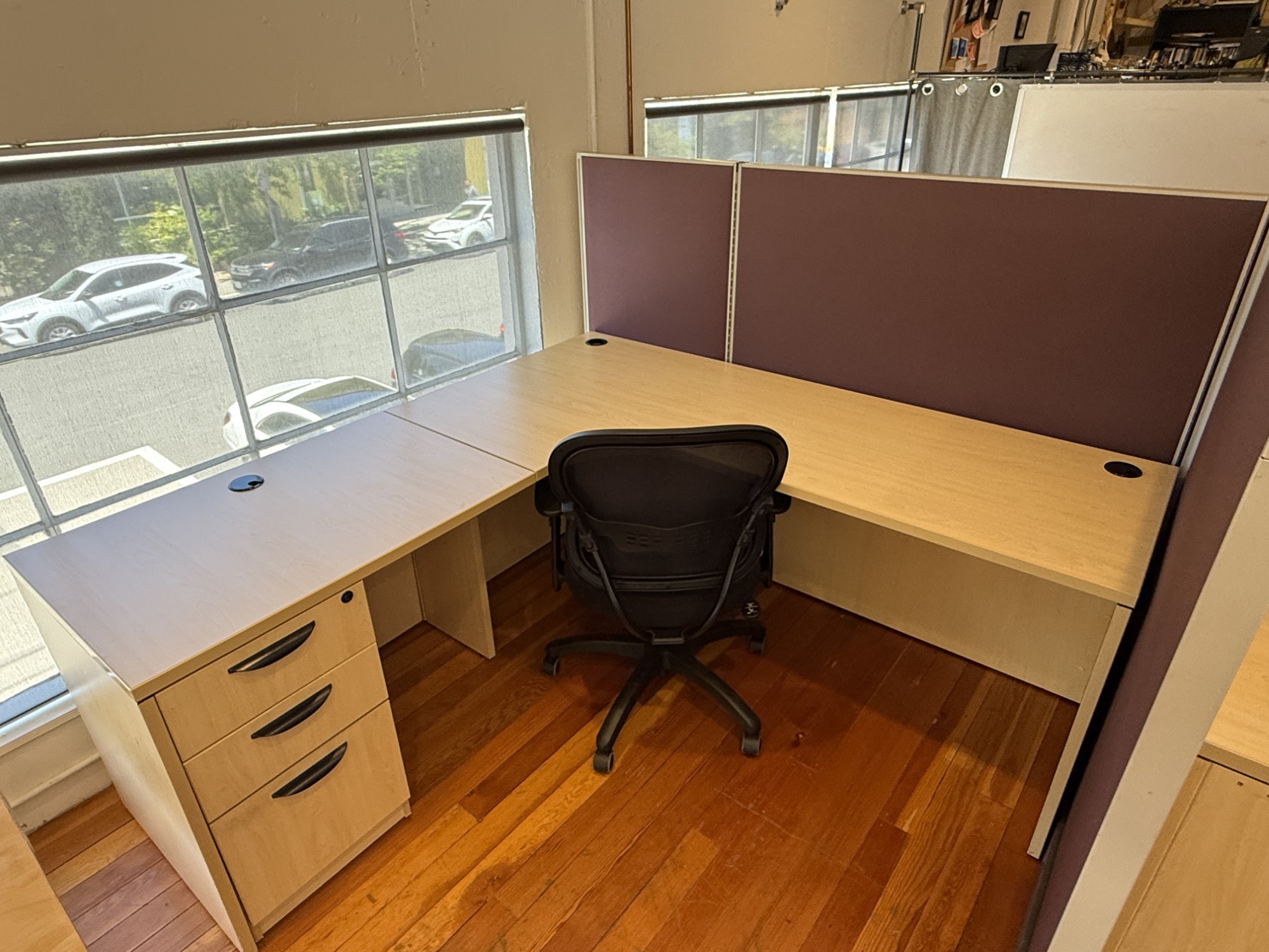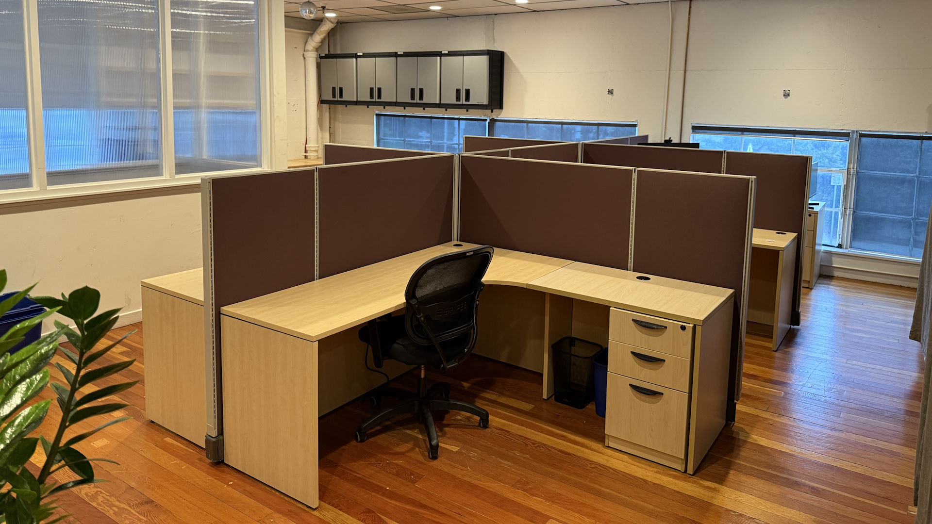 * Cube spaces ($415-500/month): Accommodates 1 person and includes L-shaped desk, chair(s), 3-drawer cabinet (large cubes only)