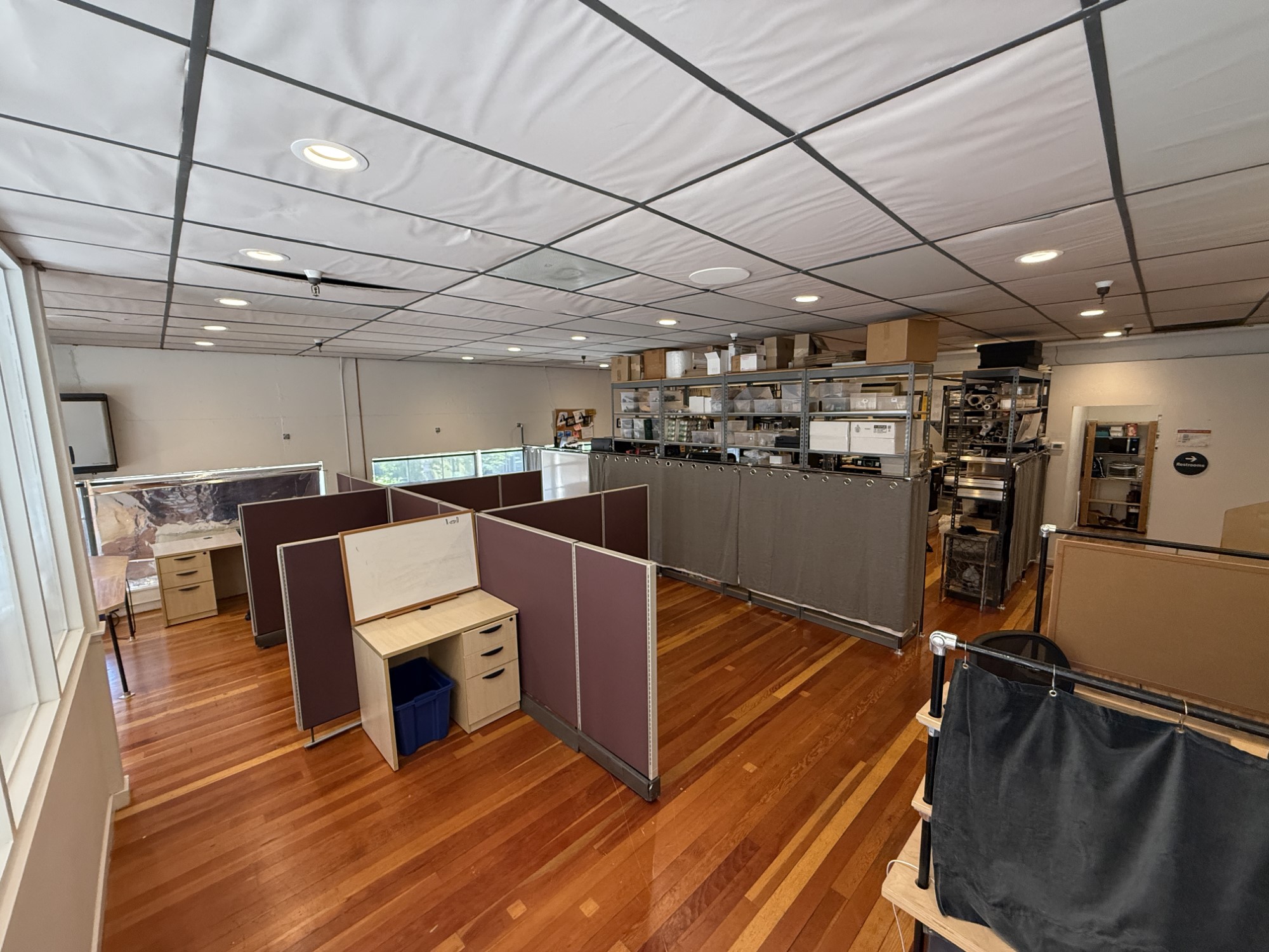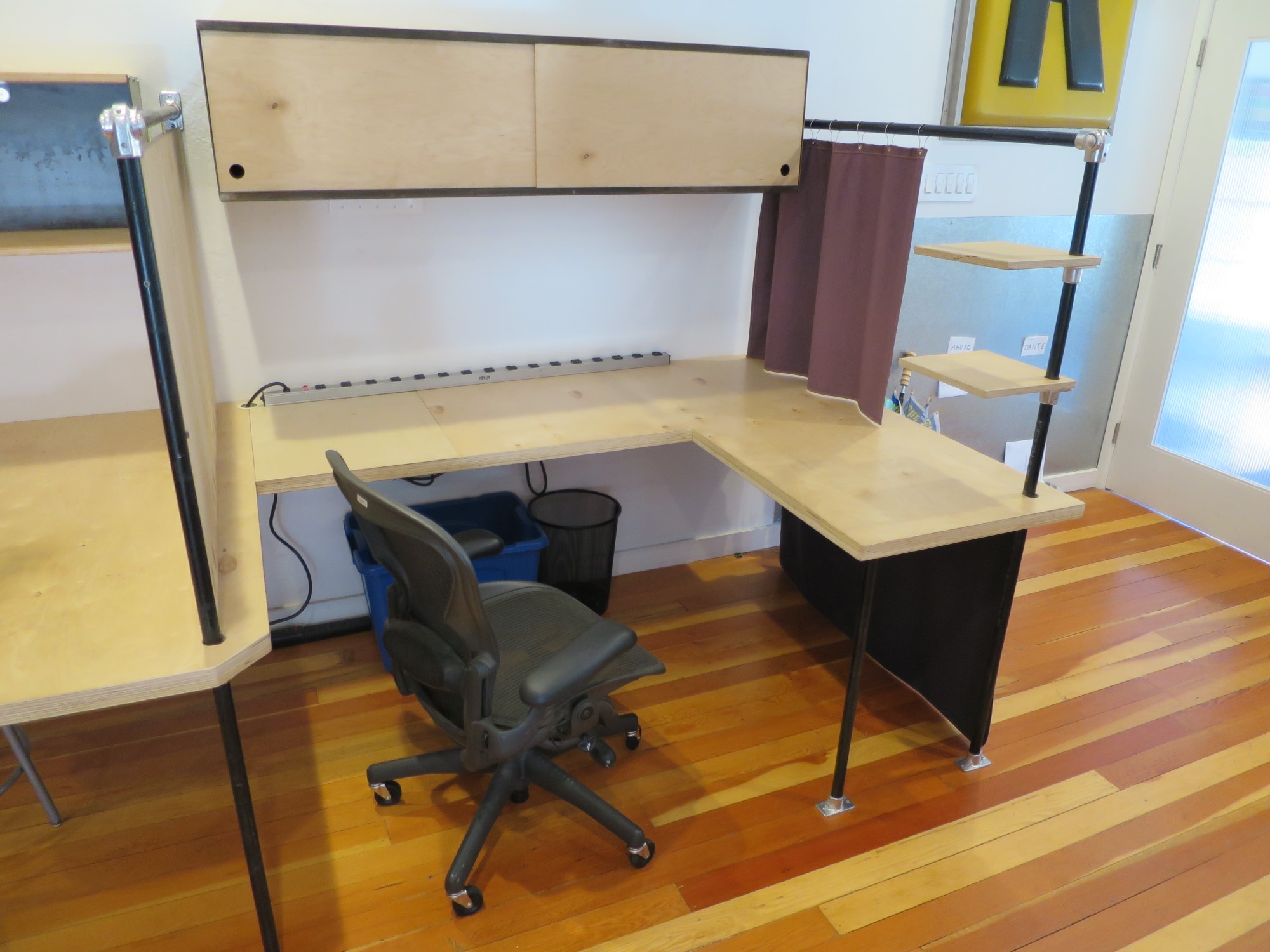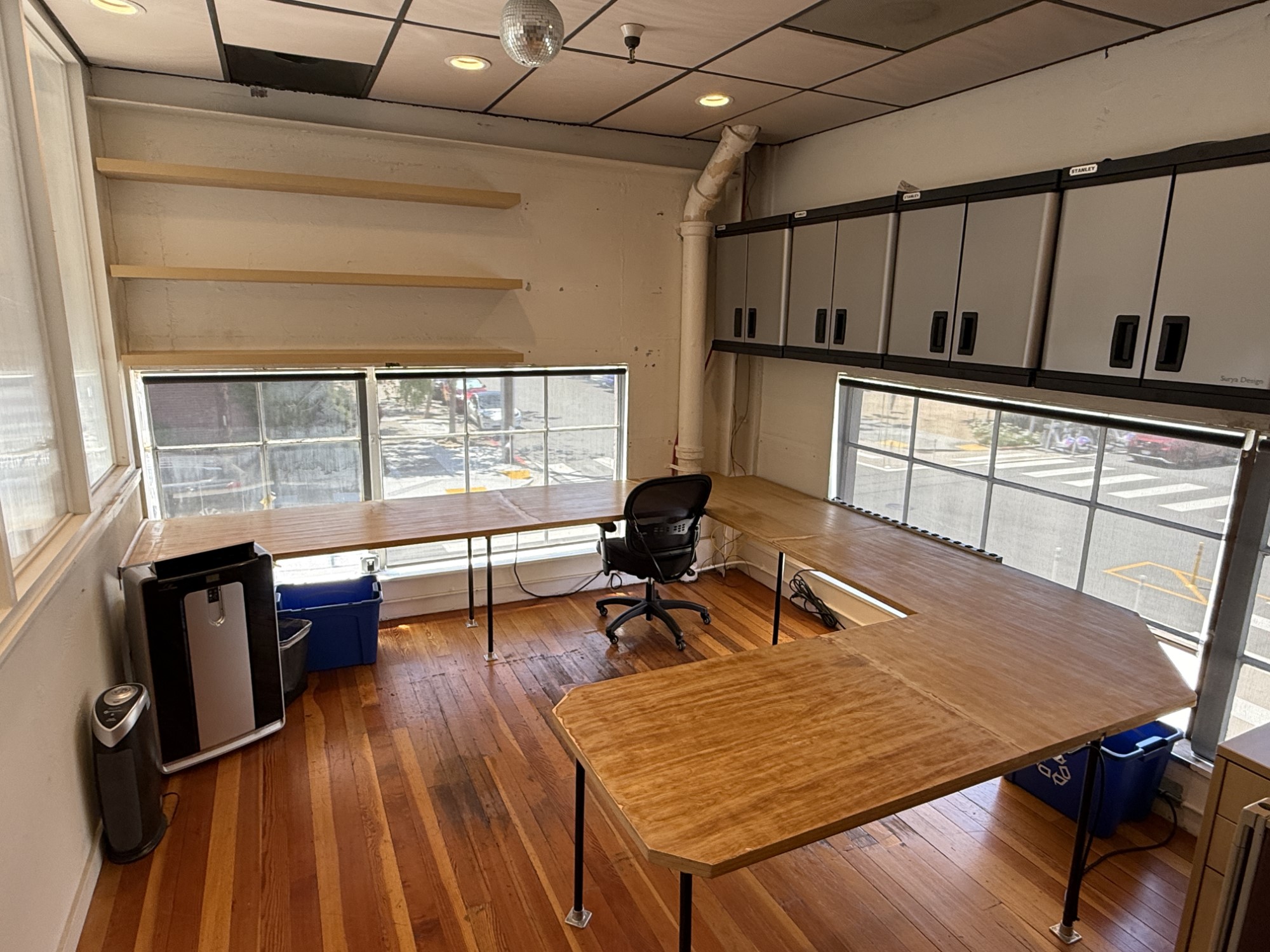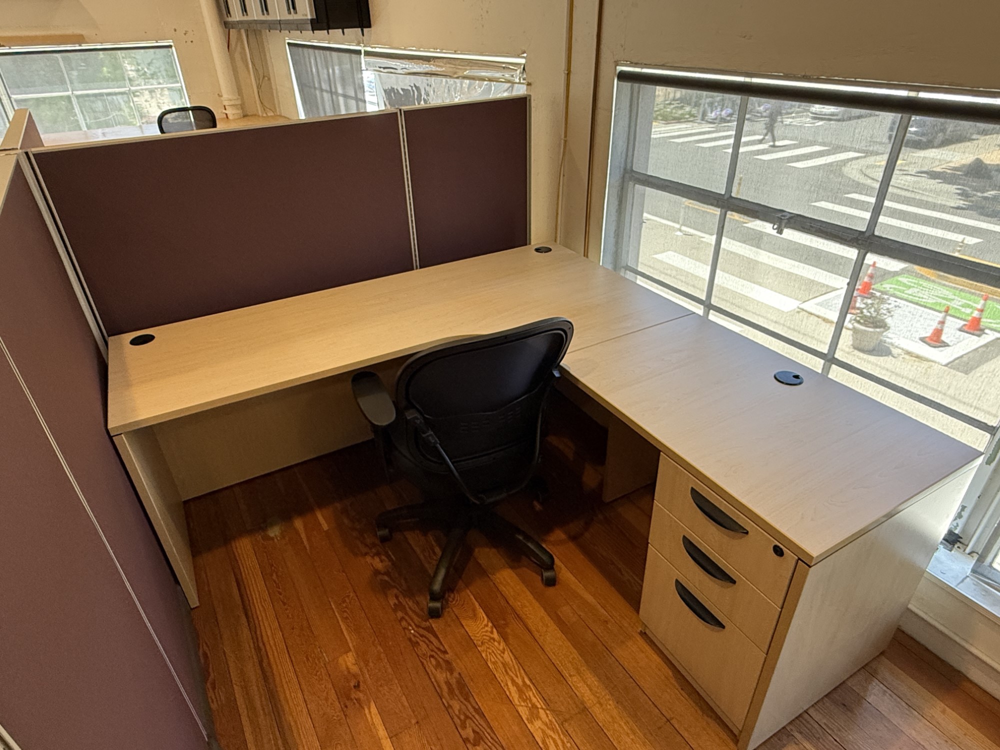 * Corner office ($1150/month): Accommodates 1-5 people and includes, U-shaped desk, chair(s), cabinets, and shelving.