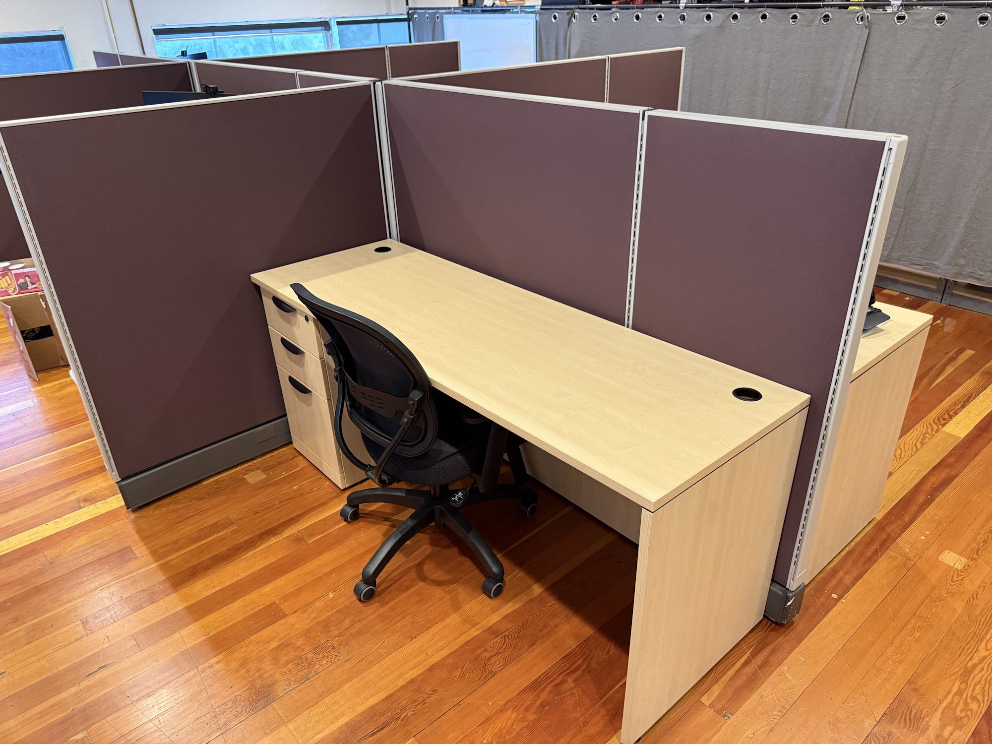 * All spaces feature custom desks and curtained partitions. Task chair available on request.